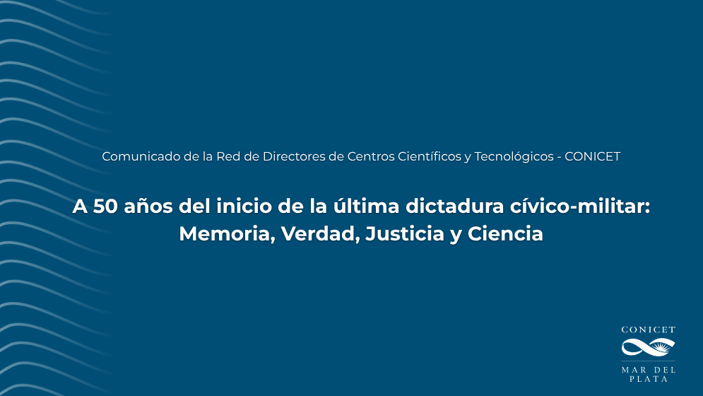 Al cumplirse medio siglo del golpe de Estado del 24 de marzo de 1976, la Red de Directores de Centros Científicos Tecnológicos (CCTs) del CONICET reafirma su compromiso inquebrantable con la Democracia, la Memoria, la Verdad y la Justicia.