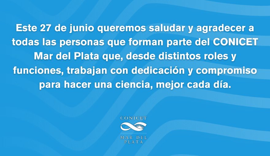 Este 27 de junio queremos saludar y agradecer a todas las personas que forman parte del CONICET Mar del Plata que, desde distintos roles y funciones, trabajan con dedicación y compromiso para hacer una ciencia, mejor cada día.