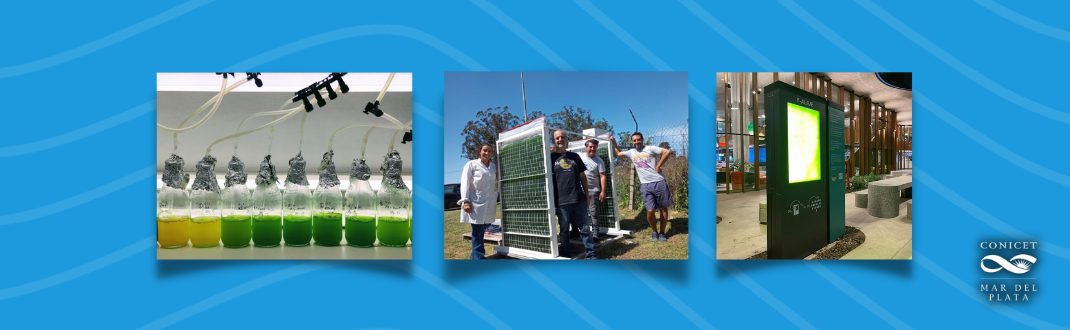 Leonardo Curatti, investigador del Instituto de Investigaciones en Biodiversidad y Biotecnología (INBIOTEC-CONICET) y responsable técnico del proyecto “Optimización del cultivo de Microalgas” explica que se trata de un reactor desarrollado junto a Y-TEC que busca contribuir con la descarbonización en entornos urbanos ya funciona en una estación de servicio del barrio de Belgrano, en la ciudad Buenos Aires. El dispositivo contiene microalgas nativas del sudeste de la provincia de Buenos Aires que se encargan de convertir dióxido de carbono y luz, natural o artificial, en oxígeno y biomasa.