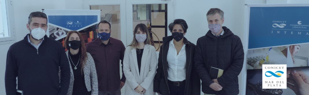 La comitiva del Ministerio de Ciencia, Tecnología e Innovación (MinCyT) que visitó al Instituto de Investigaciones en Ciencia y Tecnología de Materiales (INTEMA, CONICET-UNMdP) fue encabezada por la Directora de la Dirección Nacional de Proyectos Estratégicos (DNPE), la Dra. Erica Carrizo, y los coordinadores el Dr. Martín Babboni y la Abogada Natalia Cassais. Las autoridades fueron recibidas por Vera Alvarez, vicedirectora del Instituto y por Leandro Ramajo y Exequiel Rodriguez, ambos investigadores del CONICET y líderes de los proyectos financiados por el Fondo Argentino Sectorial (FONARSEC).